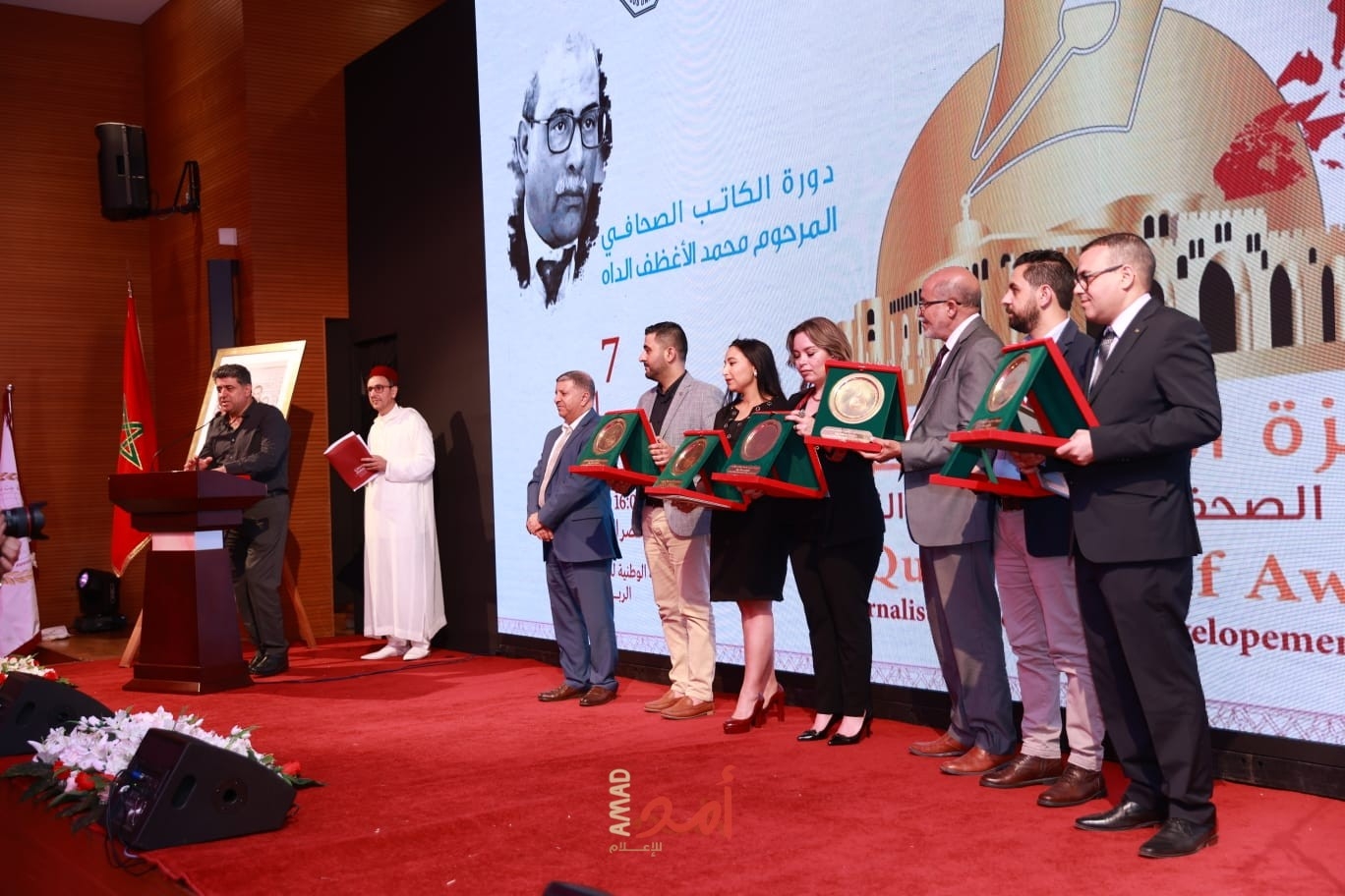 أمد/ الرباط: جرى بالرباط، تتويج الفائزين بجوائز القدس الشريف للتميز الصحفي في الإعلام التنموي في دورتها الثانية، التي حملت اسم الإعلامي المغربي الراحل محمد الأغظف الداه، المدير السابق لقناة العيون الجهوية، وفي المناسبة تم تكريم ذكرى الصحافي الفلسطيني الراحل محمود معروف، المدير السابق لصحيفة "القدس العربي" في الرباط.