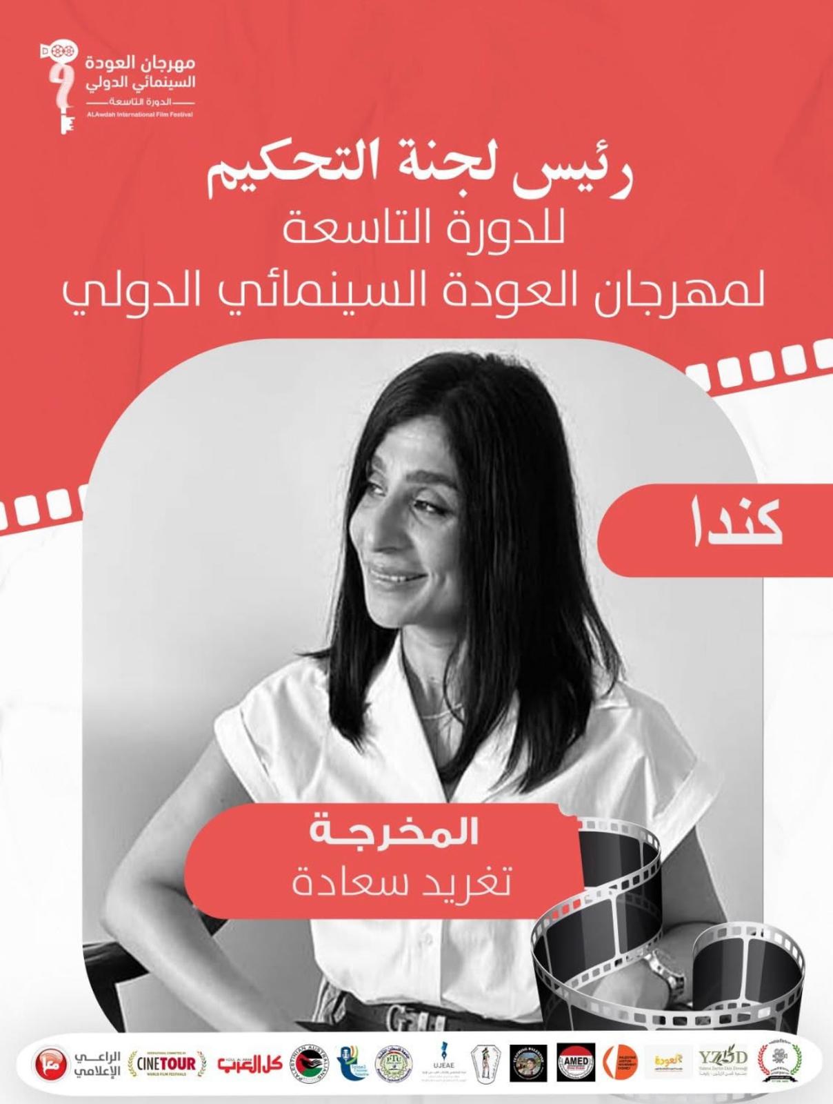 أمد/ أوتاوا: تترأس المخرجة الفلسطينية الحاصلة على جوائز تغريد سعادة لجنة تحكيم الدورة التاسعة لمهرجان العودة السينمائي الدولي، الذي يعقد في ١٥ مايو/ ايار في ذكرى النكبة في دولة فلسطين، غزة.
