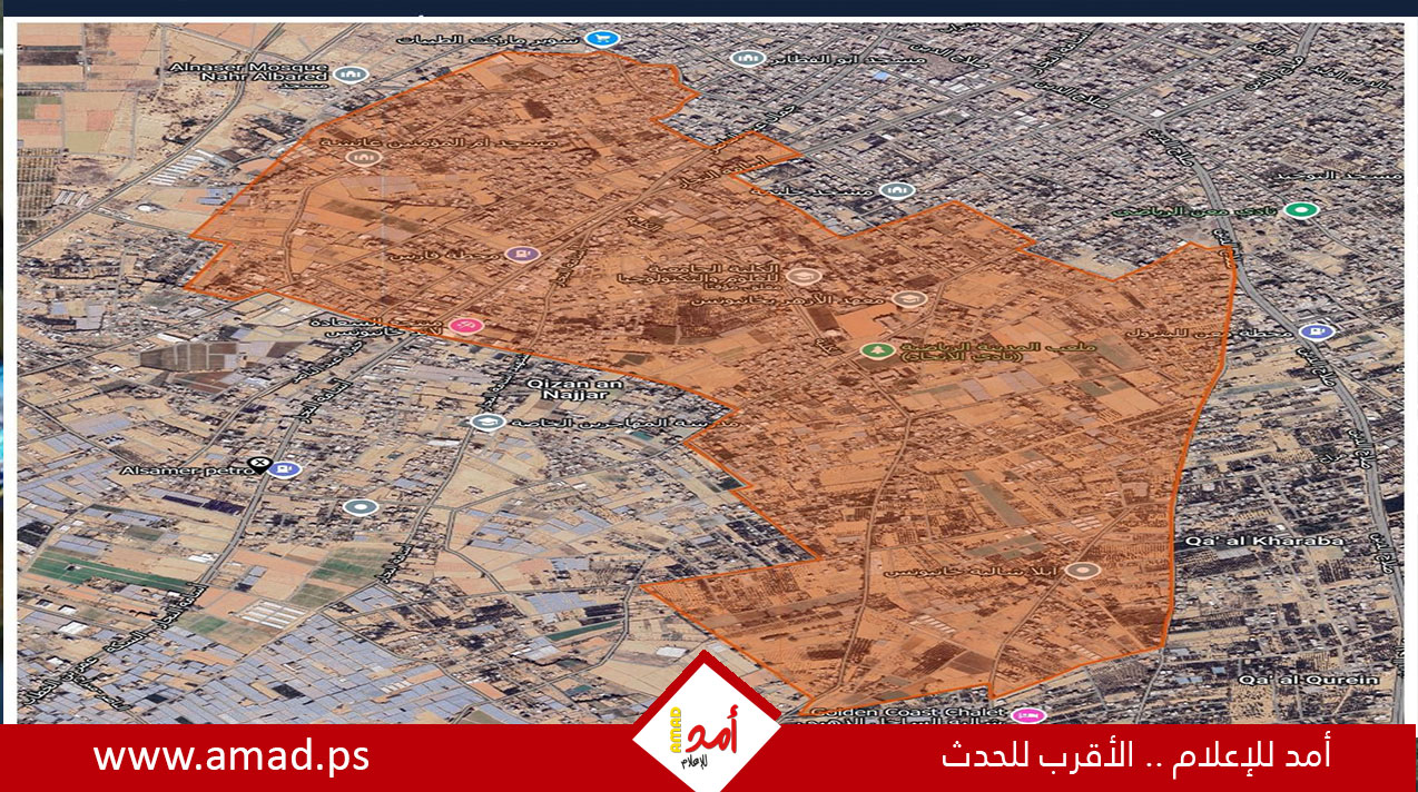 وطالب جيش الاحتلال عبر منشور على وسائل التواصل الاجتماعي يوم الأحد، "الموجودين في مناطق خان يونس وفي الأحياء: قيزان النجار، قيزان ابو رشوان، السلام، المنارة، القرين، معن، البطن السمين، جورت اللوت، الفخاري وأحياء بني سهيلا الجنوبية"- مطالبا إياهم بالانتقال بشكل فوري غرباً إلى مراكز الإيواء المعروفة في المواصي على حد زعمه.