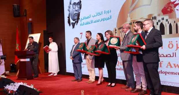 الرباط: جرى بالرباط، تتويج الفائزين بجوائز القدس الشريف للتميز الصحفي في الإعلام التنموي في دورتها الثانية، التي حملت اسم الإعلامي المغربي الراحل محمد الأغظف الداه، المدير السابق لقناة العيون الجهوية، وفي المناسبة تم تكريم ذكرى الصحافي الفلسطيني الراحل محمود معروف، المدير السابق لصحيفة "القدس العربي" في الرباط.