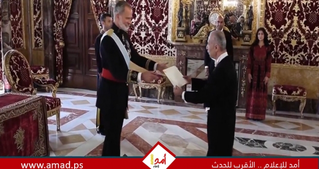 مدريد: تسلم ملك إسبانيا فيليب السادس، يوم الاثنين، أوراق اعتماد أول سفير لدولة فلسطين لدى مدريد، بعدما اعترفت بها بلاده في شهر مايو/أيار الماضي.