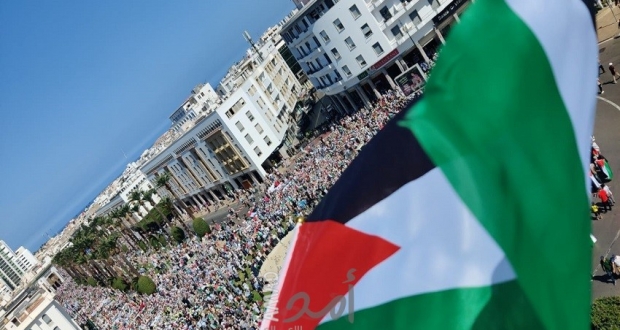 وتابع: “المغاربة كانوا وسيبقون دائما مع حق الشعب الفلسطيني في مقاومة الاحتلال، ونقول للعالم إن الضمير العالمي ينبغي أن يتحرك لإيقاف المجازر، وإيقاف حرب الإبادة الجماعية التي يتعرض لها شعب بكامله، وترتفع هذه الأصوات لتقول كفى من العلاقة مع كيان الغصب والاحتلال، ولا يقبل الشعب المغربي الحر أن تكون لبلادنا علاقة مع كيان ثبت للعالم أنه كيان إجرامي غاصب عنصري يقوم بإبادة عرقية في مواجهة شعب يدافع عن أرضه وحقوقه”.