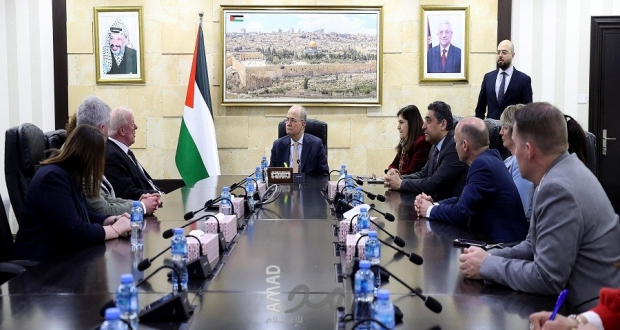 جاء ذلك خلال لقائه وفدا برلمانيا بريطانيا يوم الأربعاء، في مكتبه برام الله، بحضور وزيرة الدولة لشؤون وزارة الخارجية ن فارسين شاهين.