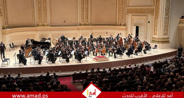 نيويورك: تجمع العشرات من المتظاهرين أمام قاعة كارنيجي في نيويورك، في وقفة احتجاجية صاخبة خلال انطلاق حفل أوركسترا إسرائيل الفيلهارمونية.